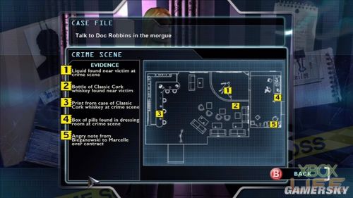 这一关中有许多迹证是相同的,因此互相比较一下往往就会让剧情有所进展。如果你比对了其中几个,但还是会有一种卡关的感觉的话,试着把所有一样的迹证完整交叉比对一次。惟一的例外是Manoto的指纹,虽然之前已经在裂缝填补剂上采到一枚,但后来汽油桶上那枚没法跟这枚来比,只能透过资料库再找一次,这样做有可能会扣掉Skill分数。