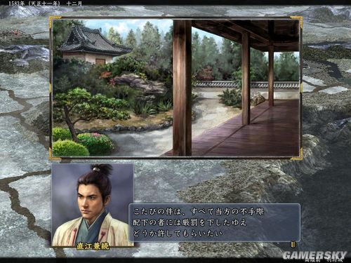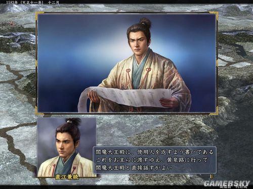 史实开局,游戏时间进行一年,玩家手下有直江兼续(身份无所谓,大名也可以),换月之际,直江兼续不是出阵状态(包括工作队运输队)