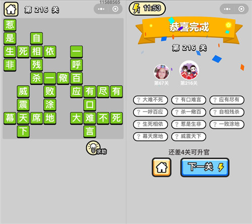 《成语升官记》探花第216关的成语都是比较简单的,只要自己的词汇量还是可以这一关也就没有什么难度,下面就是本站小编为大家整理的《成语升官记》探花第216关答案!>>>>>>《成语升官