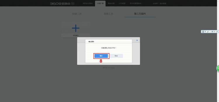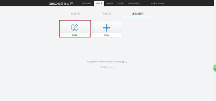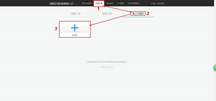 第四步:在5G路由Web管理页上,依次点击“功能扩展”(1)—“第三方插件”(2)—“添加插件”(3)
