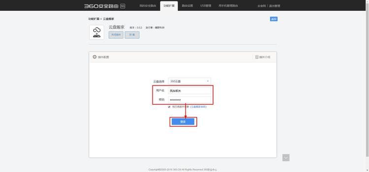 然后,在云盘搬家插件上,登录您的360帐号,如下图