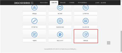 360安全路由(C301)是360自主研发的一款具备多重防护功能的智能安全路由器。360安全路由拥有全方位防黑,高速双频1200M、智联智控、精工打造、高性价比等特点。从捍卫网民利益出发,首创360sOS安全系统彻底解决路由器安全问题,真正做到“WiFi—防入侵蹭网无门,路由—防篡改防劫持”,为广大用户的家庭网络安全保驾护航。 1、在浏览器地址栏中输入5G路由的管理地址(默认地址:192.168.0.1 或 通用地址:luyou.360.cn),然后,输入管理密码输入管理密码后,点击“登录”按钮,如下图 2、打开Web管理页的主界面后,点击顶部的第二个选项 功能扩展,如下图 3、进入功能扩展界面后,翻页翻到最后,点击“宽带加速”这个工具,如下图 4、打开宽带加速界面后,点击“立即加速”按钮,如下图 5、点击立即加速后,5G路由将会自动检测您的宽带是否支持宽带加速,如下图 6、如果宽带加速成功了的话,将会显示出加速前和加速后的测速结果 如果宽带加速失败了,将会显示下图的这个界面 360安全路由有四大主要安全防护功能,分别是防蹭网、防盗号、DNS 防劫持、恶意网站拦截等。 |