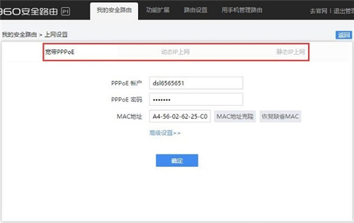 360安全路由(C301)是360自主研发的一款具备多重防护功能的智能安全路由器。360安全路由拥有全方位防黑,高速双频1200M、智联智控、精工打造、高性价比等特点。从捍卫网民利益出发,首创360sOS安全系统彻底解决路由器安全问题,真正做到“WiFi—防入侵蹭网无门,路由—防篡改防劫持”,为广大用户的家庭网络安全保驾护航。 1、连接360 P2路由器 ①宽带是电话线接入时:请准备2根较短的网线,360 P2路由器的WAN口用网线连接宽带猫(ADSL Modem)。电脑用网线连接到360 P2路由器1、2、3、4接口中任意一个,连接方式如下图所示: ②宽带是光纤接入时:请准备2根网线,360 P2路由器的WAN口用网线连接光猫。电脑用网线连接到360 P2路由器1、2、3、4接口中任意一个,连接方式如下图所示: ③宽带是入户网线接入时:把运营商提供的入户网线连接到360 P2路由器的WAN口。电脑用网线连接到360 P2路由器1、2、3、4接口中任意一个,连接方式如下图所示: 2、设置电脑IP地址。在设置360 P2路由器上网之前,需要把电脑本地连接(以太网)中的IP地址,设置为自动获得(动态IP),如下图所示。 3、设置360 P2路由器上网(360 P2路由器在第一次设置的时候,与再次登录设置时,设置界面是不一样的。因此,下面会介绍360 P2路由器首次设置上网、再次设置360 P2路由器上网 2个方面的内容)。 (一)首次设置360 P2路由器上网 ①在浏览器地址栏中输入:luyou.360 P2.cn 或者 192.168.0.1,然后按下键盘中的Enter,会出现如下图所示的页面。 ②点击“立即开启”。 ③360 P2路由器会自动检测上网方式,如下图所示。 4、连接宽带 ①宽带PPPoE:在开通宽带的时候,宽带运营商提供了 宽带账号、宽带密码给你,并且在未使用路由器上网时,电脑上需要用“宽带连接”(或者类似的拨号程序),填写宽带账号、密码进行拨号上网。那么在设置360 P2路由器上网时,就应该选择:宽带PPPoE——>在“宽带帐号”填写:运营商提供的上网账号——>在“宽带密码”填写:运营商提供的上网密码——>点击“立即开始上网”。 ②动态IP上网:在开通宽带的时候,运营商为提供任何信息给你;在没有用路由器的情况下,把宽带网线连接到电脑就能上网。那么在设置360 P2路由器上网时,就应该选择:动态IP上网——>点击“立即开始上网”。 ③静态IP上网:开通宽带的时候,运营商会提供一个静态IP地址、子网掩码、默认网关、DNS信息给你。在未使用路由器时,需要在电脑本地连接(以太网)中,填写宽带运营商提供的静态IP地址信息,然后电脑才能上网。那么在设置360 P2路由器上网时,就应该选择:静态IP上网——>然后填写宽带运营商提供的IP地址、子网掩码、默认网关、DNS。 5、点击“立即开始上网”后,路由器会自动进行连接,如下图所示。 6、当360 P2路由器连接成功后,就会提示设置“WiFi名称”、“WiFi密码”,如下图所示,按照提示设置。 7、等待WiFi配置成功 (二)再次对360 P2路由器进行设置 1、在浏览器地址栏中输入:luyou.360 P2.cn 或者 192.168.0.1 并按下Enter后,会提示输入:管理密码,进行登录,如下图所示。 2、点击“上网设置”。 3、连接宽带 在“上网设置”界面,可以看到有“宽带PPPoE”、“动态IP上网”、“静态IP上网”3个选项。这3个选项选择的依据,在“首次设置360 P2路由器上网”部分,已经进行了详细介绍,下面在简单的介绍下。 ①有宽带账号、宽带密码,并且在未使用路由器上网时,电脑上需要用“宽带连接”(或者类似的拨号程序),填写宽带账号、密码进行拨号上网。那么这里就应该选择“宽带PPPoE”——>“PPPoE账户”填写:宽带账号——>“PPPoE密码”填写:宽带密码——>点击“确定”。 ②在没有用路由器的情况下,把宽带网线连接到电脑就能上网。那么这里就应该选择:动态IP上网——>然后点击“确定”。 ③运营商会提供一个静态IP地址、子网掩码、默认网关、DNS信息给你。在未使用路由器时,需要在电脑本地连接(以太网)中,填写宽带运营商提供的静态IP地址信息,然后电脑才能上网。那么这里就应该选择:静态IP上网——>然后填写运营商提供的“IP地址”、“子网掩码”、“默认网关”、“主DNS”、“从DNS”——>点击“确定”。 4、点击“WiFi设置”。 5、“WiFi状态”选择:开启——>设置“WiFi名称”——>“加密方式”选择:WPA/WPA2-PSK——>设置“WiFi密码”——>点击“确定”。 6、检查设置是否成功:查看“连接状态”,如果显示:正常,说明360 P2路由器上网设置成功,可以正常使用了。 360安全路由有四大主要安全防护功能,分别是防蹭网、防盗号、DNS 防劫持、恶意网站拦截等。 |