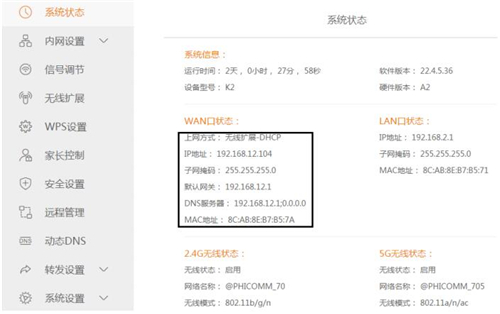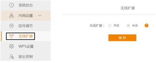 2、进入【高级功能】后点击左侧【无线扩展】选项,如图: