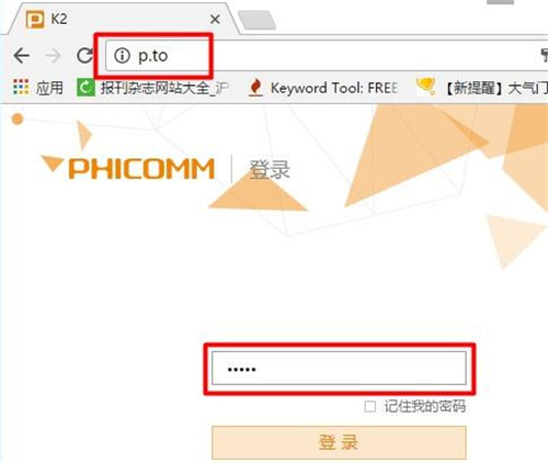 注意问题: 需要一直按住WPS/RESET按钮10秒左右的时间不要松开,有些朋友操作的时候,只按了一下WPS/RESET按键,导致恢复出厂设置不成功。 方法二、在设置页面重置 1、在浏览器中输入斐讯K2的设置网址:p.to,打开登录页面——>输入“管理密码”,登录到设置界面。
