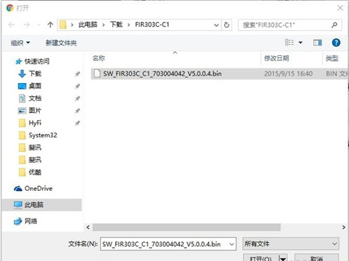4、浏览找到电脑上解压后的.bin固件文件。