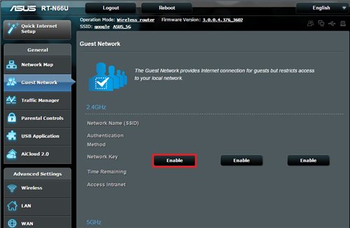 1、进入访客网络的页面,点击 [启用](Enable) 开始建立访客网络。
