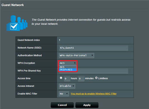 4、随着不同的验证方法,将有不同的WPA加密可以选择。