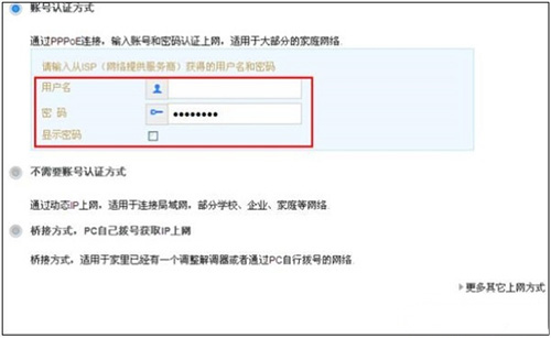 温馨提示:另外在学校、办公室等网络环境中,已经有一台路由器可以上网了,需要把华为WS326路由器安装到原来的网络中,这时候也应该选择:不需要账号认证方式。 (4)、桥接方式,PC自己拨号获取IP上网:桥接方式 PC自己拨号获取IP上网 这种方式,几乎用不到,可以忽略这个选项。