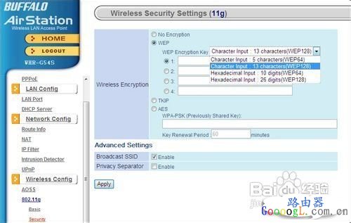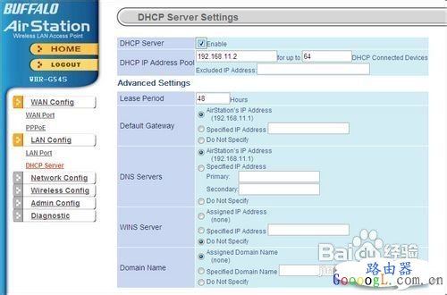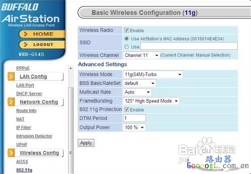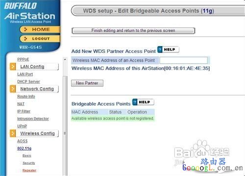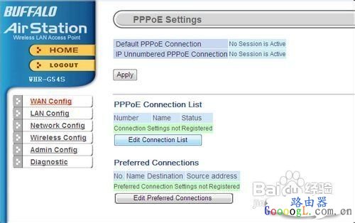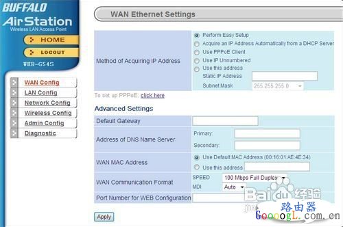 无线路由器是用于用户上网、带有无线覆盖功能的路由器。无线路由器可以看作是一个转发器,将家中墙上接出的宽带网络信号通过天线转发给附近的无线网络设备(笔记本电脑、支持wifi的手机、平板以及所有带有WIFI功能的设备)。 今天我们给大家带来福音Buffalo系列无线路由器的设置操作界面详尽介绍。由于在众多的路由器当中,有着不少出色的产品,但其中有些由于缺乏中文的操作界面,导致部分国内的用户无法随心所欲地驾驭自己的路由器,无法痛快淋漓地在网络中穿梭自如。