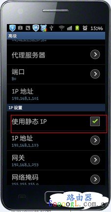 STEP2:手机默认“使用静态IP”的勾没有勾上,即自动获取IP地址(推荐)。获取到正确的网络参数之后,手机即可正常连接到网络。如果要手动设置静态IP,可以将“使用静态IP”勾选上,并手动设置“IP地址”、“网关”、“网络掩码”以及“DNS”等参数。