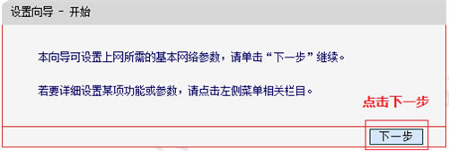3、登录路由器管理界面,点击 设置向导 > 下一步,开始设置向导。