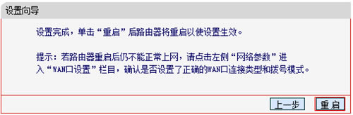 11、设置向导完成,重启路由器,点击 重启,弹出对话框点击 确定。