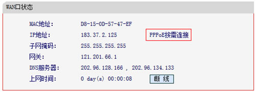 12、重启完成后,把电脑的IP地址设置为自动获取并连接修改后的无线网络(zhangsan)。进入路由器管理界面,点击 运行状态,查看WAN口状态,如下图框内IP地址不为0.0.0.0,则表示设置成功。