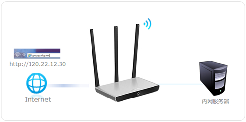 至此,虚拟服务器规则设置完成。 5、根据以上设置,Internet中的客户端通过浏览器访问网页服务器,访问形式如下:
