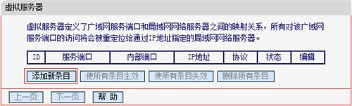 2、登录路由器管理界面,进入 转发规则 >> 虚拟服务器,点击 添加新条目。