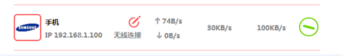 注意:限速是针对设备的MAC地址,设备无需固定IP地址,设备更改IP地址不会导致限速不生效。 ③设置手机网速,使用相同的方法,限制手机的上下行速度,如下图: