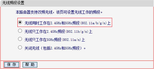 路由器没有默认管理员密码,密码是初次设置路由器时设置好的,如忘记密码,必须复位路由器。 3、登录路由器的管理界面后,进入 无线频段设置,选择 无线同时工作在2.4GHz和5GHz频段(802.11a/b/g/n/ac)上,再点击 保存。