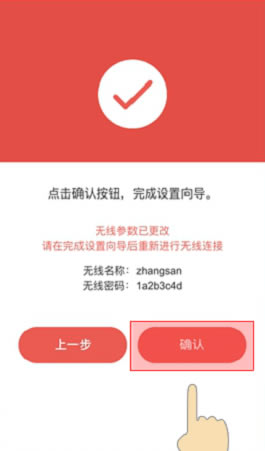5、设置无线网络,在“无线名称”后面,自定义设置wifi名称——>在“无线密码”后面,自定义设置wifi密码——>点击“下一步”,接着点击“确认”。