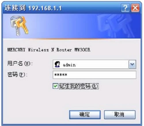 2、手机连接水星MW300R的wifi信号,使用手机设置水星MW300R路由器上网的第一个步骤是,先让手机连接到水星MW300R路由器的默认wifi信号。 3、打开手机中的浏览器,在浏览器地址栏中输入:192.168.1.1——>在跳转页面中,“用户名”、“密码”都输入:admin——>点击“确定”。