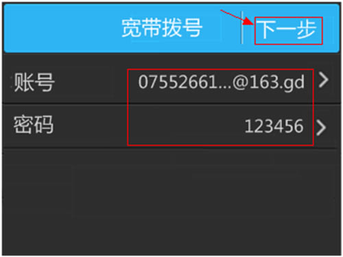 检查宽带账号密码正确,点击 下一步。