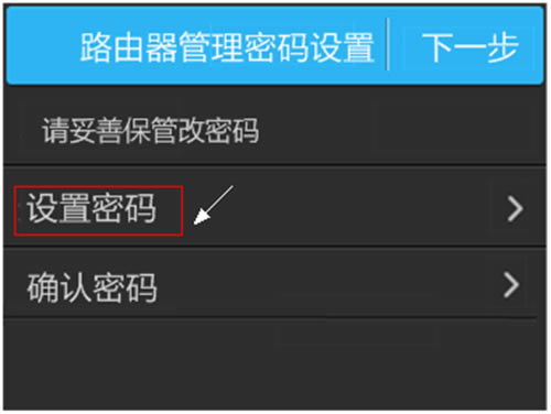 触控笔使用提示:如某一设置页面有多项参数需要设置,进入键盘后,输入对应参数并点击next,最后点击done即可。 2、设置管理员密码 使用触控笔点击屏幕,需要设置管理员密码。点击 设置密码,设置好路由器的管理员密码(6-15位),如下图: