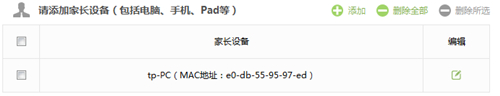 注意:如果家长有多台电脑或者手机,请逐一添加。 4、家长电脑添加完成后,如下列表: