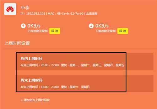 6、您也可以控制其他终端的上网时间,如下: