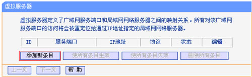 1、登录路由器管理界面,进入 转发规则 >> 虚拟服务器,并点击 添加新条目。