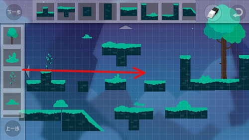 选择好背景后,我们就可以开始设计地图了,按住屏幕上方的各种方块来搭建地图的安全平台。